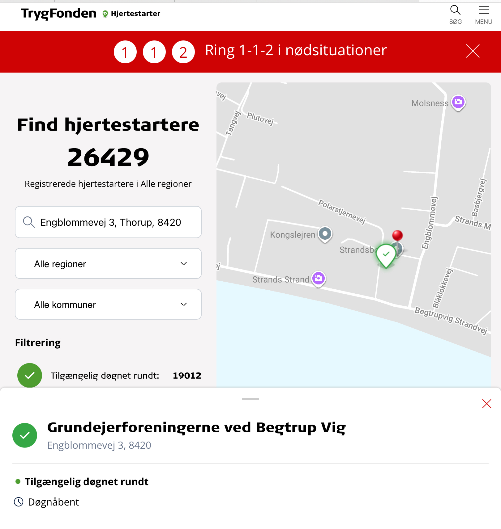 tjekker den jævnligt selv. Andre hjertestartere findes ved forsamlingshuset i Strands,