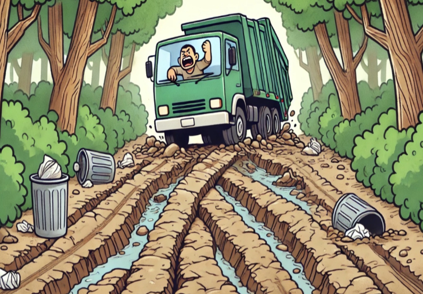 Konsekvensen for mislighold af veje og træer kan blive et fælles anliggende, da dette kan være årsag til, at skraldebilen heller ikke vil køre til andre på vejen!